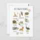 This Australian animal postcard is great as an art piece for a classroom or as nursery decor. The design features a Kangaroo, Kookaburra, Wombat, Echidna, Possum, Koala, Platypus, Dingo and Emu. The postcard is gender-neutral in muted green, beige and gray tones, making them perfect for a boy or girl. You can customize the background and the font by clicking "Personalize" and "Edit Using Design Tools".