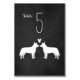 Australian Cattle Dog bride and groom silhouettes with heart. A chalkboard style wedding reception table card for Heeler lovers. Each card must be numbered and added to cart separately. Visit Jenn's Doodle World for even more dog breed table cards and Blue Heeler themed wedding planning products.