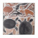 My series of tempera: "Australian Dreams". These series were made for children art lesson about Aboriginal Art. Turtles, fishes, snake and other animals (mythical animals). Brown and black colors. Ceramic Tile.