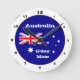 WALL CLOCK: Australia, G'day Mate greeting & Australian Flag fashion design - love my country, travel, holiday, country patriots / sports fans