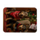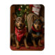 An enchanting scene captures the essence of coziness and holiday spirit as furry companions adorned in Santa Claus hats gather around a crackling fireplace. The warmth emanating from the hearth creates a snug atmosphere for these adorable canines, while festive stockings hang in the background, enhancing the merry ambiance. The charming illustration portrays a timeless image of companionship and festive joy, perfect for celebrating the holiday season with a touch of canine charm.