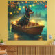 Set sail into the magic of the holiday season with this beautifully detailed illustration, showcasing a proud dog sitting in a festively decorated boat, gliding across a serene Christmas lake. The twinkling lights from nearby pine trees reflect off the water, casting a warm, festive glow that enhances the cozy ambiance. Ornaments dangle from the boat's sides, while glowing lanterns light the way, creating a scene that captures the true essence of Christmas warmth and joy. This nostalgic artwork brings a touch of holiday magic to any space, perfect for those who cherish the spirit of the season.
