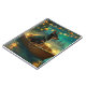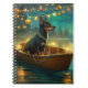 Set sail into the magic of the holiday season with this beautifully detailed illustration, showcasing a proud dog sitting in a festively decorated boat, gliding across a serene Christmas lake. The twinkling lights from nearby pine trees reflect off the water, casting a warm, festive glow that enhances the cozy ambiance. Ornaments dangle from the boat's sides, while glowing lanterns light the way, creating a scene that captures the true essence of Christmas warmth and joy. This nostalgic artwork brings a touch of holiday magic to any space, perfect for those who cherish the spirit of the season.