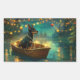 Set sail into the magic of the holiday season with this beautifully detailed illustration, showcasing a proud dog sitting in a festively decorated boat, gliding across a serene Christmas lake. The twinkling lights from nearby pine trees reflect off the water, casting a warm, festive glow that enhances the cozy ambiance. Ornaments dangle from the boat's sides, while glowing lanterns light the way, creating a scene that captures the true essence of Christmas warmth and joy. This nostalgic artwork brings a touch of holiday magic to any space, perfect for those who cherish the spirit of the season.
