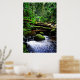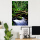 A vivid colour capture depicting Australia's famous rainforest with the lush green undergrowth evident in the background with a small brook in the centre. Flowing from the creek with mossy rocks and falls logs changing the watercourse