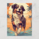 Colorful vivid art design of a Australian Shepherd at a tropical beach.