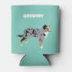 Create a fun personalized gift when you add a name to this foam can sleeve which features realistic style illustrations of Australian Shepherd dogs against a mint green background.