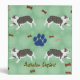 Cute cartoon style merle Australian Shepherd with a scattering of bones and paw tracks. This design is intended to tile seamlessly.