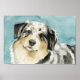 This print features a reproduction of my my original watercolor painting of an Australian Shepherd.