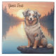 Australian Shepherd Dog sitting by a lake at sunset. Add this image to other products. Add your own text too. Change background color. Lots of pets in my store.