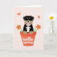 Fun illustration for spring and summer for all the dog lovers. Showing an Australian Shepherd popping out of a flower pot surrounded by two flowers and butterflies.
