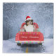 A Christmas truck going through snow delivering Christmas gifts and australian shepherd dog. A perfect Christmas gift idea for someone who love this dog breed.