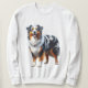 artistic illustration of a tricolor Australian Shepherd dog happily standing
