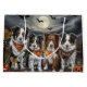 Unleash the spooky spirit with this eerie Halloween design featuring a pack of dogs under a dark, moonlit sky, surrounded by flying bats and glowing pumpkins. Perfect for those who love a touch of frightful fun with their furry friends!