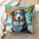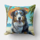 Australian Shepherd On Beach dog lover summer gift Throw Pillow