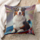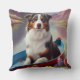 Australian Shepherd on Paddle: A Scenic Adventure Throw Pillow