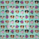 Australian Shepherd purple florals mint Fabric