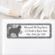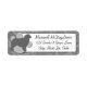 Awesome monochrome Australian Shepherd address labels for the modern dog lover. A gray breed silhouette stands stacked in front of a silver paw print, with a squiggly background.