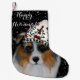 Perfect! Exactly what I ordered! I uploaded a picture of my blue chow, and the screen print was incredible. the back side of the stocking was the red and black checkered print. my puppy's name was also printed on the cuff of the stocking. PERFECT! Highly recommend this product! My puppy's name was screen printed onto the cuff of the stocking, the font was perfect!