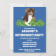 Create custom invitations for retirement parties, birthday parties and more with these invites. They feature a realistic style illustration of an Australian Shepherd or Aussie along with some tropical leaves. All the text on these invites can be personalized with your own information.