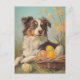 Celebrate Easter with the energetic and intelligent Australian Shepherd in this vintage-style postcard. Featuring the beloved dog surrounded by colorful Easter eggs, blooming spring flowers, and festive seasonal accents, this design is perfect for Australian Shepherd lovers, collectors, and fans of nostalgic holiday art. A heartwarming keepsake to share Easter joy.