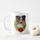 This Australian Shepherd Dog could not be more fashionable and ready for the holidays than with the holiday wreath wrapped around his neck.