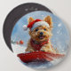 Australian Terrier in Sledge Let it Snow Christmas Button