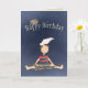 A birthday card featuring a boy sitting with a cockatoo on his head, and a goanna walking in front of him, Above is an echidna walking on the Text