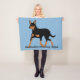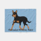 Cartoon style Australian Working Kelpie trots across a blue background.