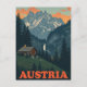 Bring the breathtaking beauty of the Austrian Alps to your home with this vintage-style magnet. It features a stunning illustration of a cozy mountain cabin nestled in a lush valley with snow-capped peaks and a waterfall in the background. This magnet is a perfect souvenir for anyone who loves Austria's majestic landscapes and outdoor adventures. It's a great keepsake to remember a trip or a gift for a friend who dreams of traveling.