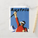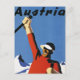 Vintage travel poster for Austria in an Art Deco illustrative style promoting skiing and winter sports.
