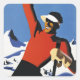 Vintage travel poster for Austria in an Art Deco illustrative style promoting skiing and winter sports.