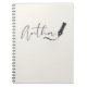 A clean and elegant notebook design celebrating the identity of the author. The handwritten script “Author” is paired with a classic fountain pen motif in charcoal ink, creating a timeless design inspired by the craft of writing.