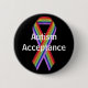 Rainbow ribbon. Black background. White: Autism Acceptance.