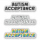 A sticker sheet with the words "Autism Acceptance" 3 times. One in solid black, one in white with a black outline and one in a rainbow text.