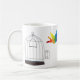 A bird comprised of rainbow puzzle pieces breaks free from it's cage. Hopes of autism awareness are reflected in this artwork. Original art by Night Owl's Menagerie, 2012.