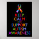 Keep calm and support autism awareness. Autism version of Keep Calm and Carry on motivational poster with autism ribbon and text in vivid autism spectrum colors.