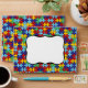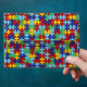 These items are printed with a colorful puzzle piece pattern that symbolizes autism awareness.
