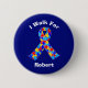 Beautiful blue custom Autism awareness button for autistic friends or family that are participating in a fundraiser walk. A cool proud autism mom or dad gift that can be personalized with any text below the puzzle piece ribbon of blue, yellow, and red. Wear this during your fundraising event.