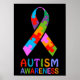 Autism awareness ribbon with interlocking puzzle pieces in vivid autism colors.