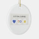 Lightweight, smooth, pure white ornament with nice sheen. Perfect size to be seen from across the room ... and to attract closer inspection! Price was great for ordering enough for the whole family! Clear, bold black design just as requested. Matches the order exactly. Just so nice!