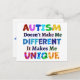 Inspirational quote of “AUTISM Doesn't Make Me DIFFERENT, It Makes Me UNIQUE” with colorful Autism puzzles to support and advocate Autism Awareness.