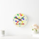 I bought the clock as a 'first time' grandmother. When I opened the package, I cried. the workmanship, material, color and the opportunity to personalize it was just perfect. I know that my grandson will be able to quickly learn to identify numbers, count and tell time! What a keepsake! I was totally happy with the printing, color choice and overall presentation of the clock!