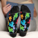 This fun Halloween socks are bright and colorful. The small print is crisp and shows the fun details. The softness of the socks feels nice on my feet and ankles. .