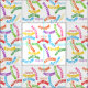 Colorful repeat wording autism fabric, curved wording, "Autism" and "Imagine" on a white background.