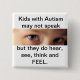 This button is intended to reming people that negative comments DO affect kids with Autism- even though they often do not show that they hear the comments.