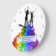 Great price for a very nice product. Arrived a day early - unheard of these days. The outside gold area has a little more orange tone to it than shown in the picture. Great packing so product can't get damaged. I used the same packing to forward the clock to my brother and sister-on-law for the 50th wedding anniversary. Printing was just as expected - lovely!