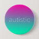 Autistic pride with flair! Pin featuring magenta and green gradient background with white text “autistic”.