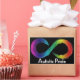 Autistic Pride text with rainbow neurodiversity infinity logo.