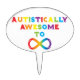 Design made with love for Autism Awareness. Rainbow letters form the phrase 'Autistically Awesome To Infinity' with an infinity symbol.